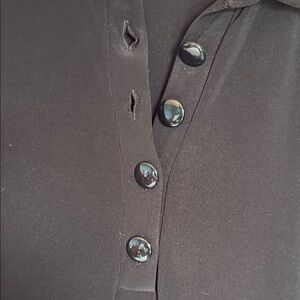 This dress combines elegance and versatility with its classic black and green color palette. Designed for both work and casual settings, it features a sophisticated polo collar and long sleeves, offering a polished look. The sheath style ensures a flattering fit, making it a timeless addition to any wardrobe.Skinny belt missing.
