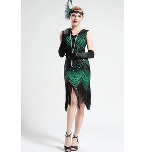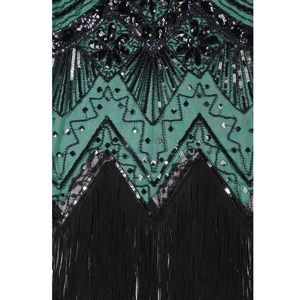 Black and Green glass beaded Fringe Flapper Dress