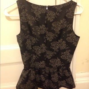 Extra small black and grey peplum top, flower pattern, very classy, Naf Naf, European size 34 U.S. XS Size 2