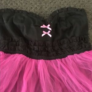 This is a Beautiful Black & Hot Pink Tutu Style Dress by Pinky Pinups. It is strapless with a type of non slip rubber material for extra reassurance for your bust :) Worn only once & I is in like new condition! It goes above your knee & has about 3 layers of tulle with the black mini dress on the bottom (Interested in the dress & would like to know the measurements? I would be more than happy to personally measure the dress for you. Any other questions, feel free to ask. Might negotiate price :)
