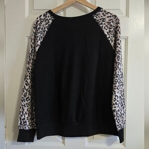Black and Leopard Print Pumpkin Sweatshirt Fall Size M