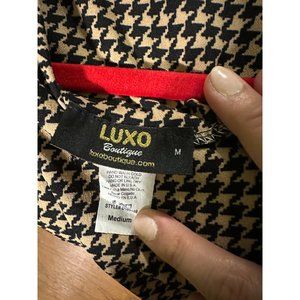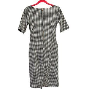 The black and nude houndstooth pattern adds a touch of timeless charm, creating a look that's both polished and on-trend. The size M silhouette ensures a comfortable and flattering fit, making it a go-to choice for various occasions. Whether you're heading to the office or a special event, this dress is designed to make you stand out with understated chic.