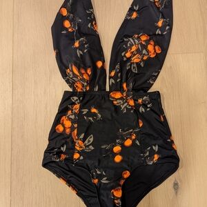 Black and Orange Floral Swimsuit