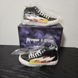 Brand new in box! These Revenge Storm Hightop Black Flame sneakers bring bold energy with their iconic lightning bolt design and flame detailing.