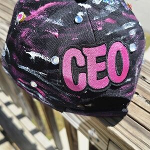 Trendy trucker cap with 'CEO' and 'Booked Busy Blessed' patches. Ideal for a stylish woman who's standing on business!