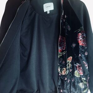 Black and Pink Floral Bomber Jacket Velvet Finish