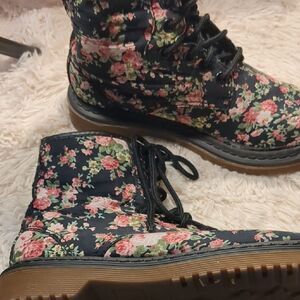 Stylish floral combat boots. Lace-up design. Durable sole. Size 3 or European 36.