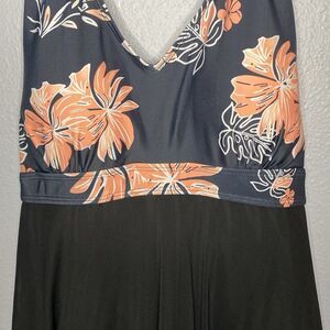 Black and Pink Hawaiian Floral Halter Tankini One Piece Swim Suit Size XL