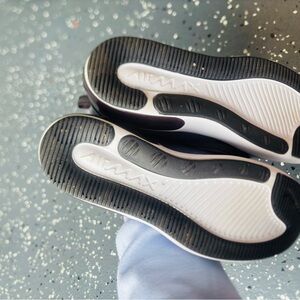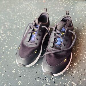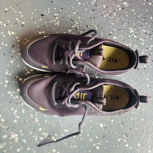 Sleek black and purple athletic sneakers with a modern design. Perfect for active wear.