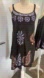 This chic mini dress features a stunning black base with intricate purple embellishments. Perfect for a night out or a special occasion.