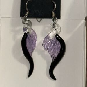 Black and Purple Glass Wing Earrings Unique Hand-shaped Torchwork