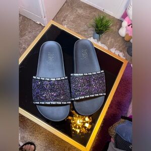 Black and Purple Glitter Slides