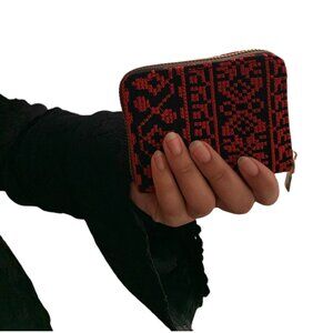 This Black and Red Embroidered Palestinian Women's Wallet is a stylish accessory that combines traditional design with modern functionality.