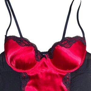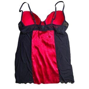 Black and Red Goth Satin Mesh Lingerie Babydoll Cami Lace Top Apt 9 Size XL