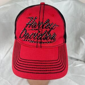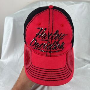Black and Red Harley Davidson Trucker Hat with Rhinestone Logo