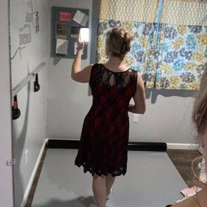 Red dress with black lace overlay. Comes with black satin sash. Great condition. Comes from Blu Sage, size 8 - runs true to size.