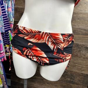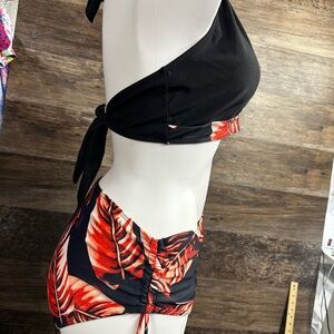 Black and Red Leaf Bikini with Halter Top Womens Size XL