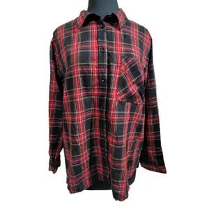 Black and Red Plaid Flannel Button Up Shirt Size XL