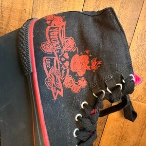 Step up your style with 's platform high tops. Featuring a bold black and red design, these shoes offer both comfort and a striking look. Perfect for making a statement.