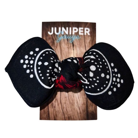 Black and Red Rose Paisley Rockabilly Bandana Knotted Hair Bow