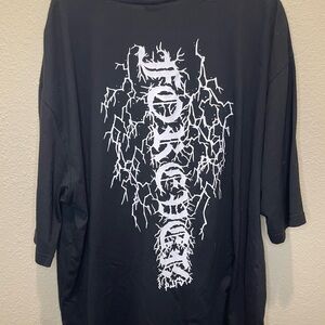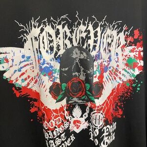 This short sleeve tee features a striking black and red graphic design that adds an edgy touch to your casual wardrobe. The bold artwork on the front makes it a standout piece, perfect for those who love a rock-inspired aesthetic. Crafted for comfort and style, it's an essential addition to any collection.
