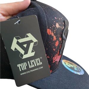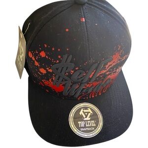 This stylish snapback hat features a striking black base with a bold red splatter pattern, reminiscent of graffiti art. The flat bill and adjustable snapback closure ensure a comfortable fit, making it a standout accessory for any casual outfit.