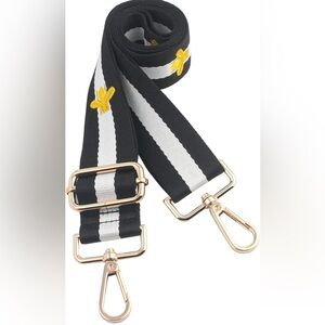 Stylish black and red striped bag strap featuring gold bee embroidery. Includes gold-tone hardware for easy attachment. Black and white also available! Gucci Lovers!❤️