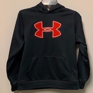 Black Under Armour Sweatshirt with a red logo. Large pocket on the front. In good condition!