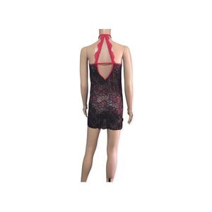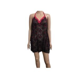 Good preowned condition, black and red mesh lace teddy, size L, see pics for measurements for custom fit.