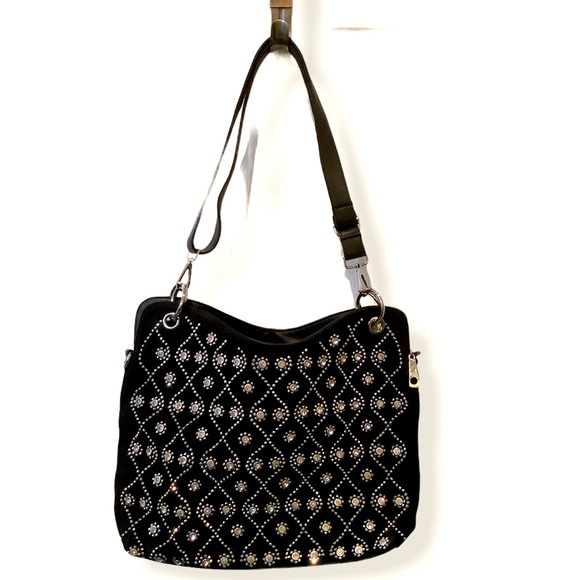 Black and rhinestone purse with gold polkadot interior. New without tags. New used