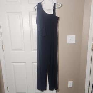 Black and Silver Asymmetrical Jumpsuit with Metallic Embellishments