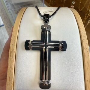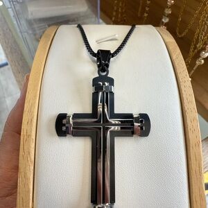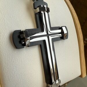 Stylish cross pendant necklace in black and silver. Perfect for any occasion.chain lenght is 60 cm