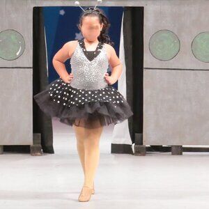 Black and Silver Dance Costume worn for 1 season with tights. Non-smoking home.