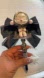 Unique pen with a doll topper. Features a black bow and silver accents. Perfect for collectors.