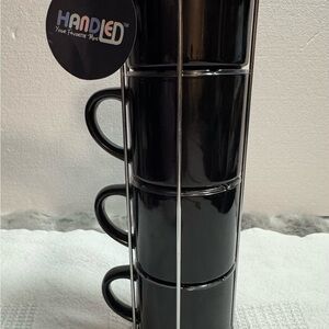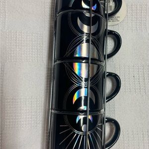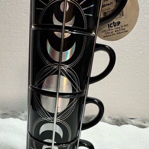 Elevate your coffee experience with these stylish black and silver stacking mugs. Featuring a unique moon phase design, these mugs are perfect for any modern kitchen.