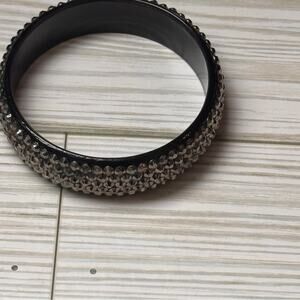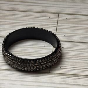 Elegant black bangle adorned with sparkling silver rhinestones. Perfect for adding a touch of glamour.
