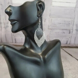 These are metal alloy Skeleton Leaf Earrings. They have two layers, a smaller layer on top with a large layer in the back. These are beautifully delicate with such a serene feel to them and are super light weight so that they can be worn all day. They compliment a variety of outfits and occasions making them a super versatile necessity to the wardrobe.