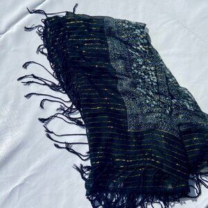 Black and Silver with Gold Metallic Pinstripe Scarf with Fringe