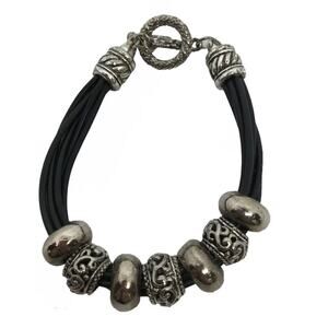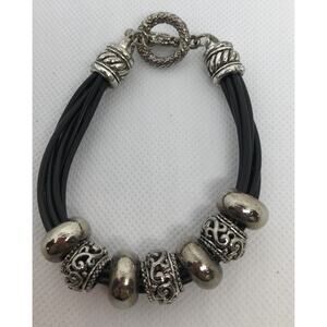 Black and Silvertone Toggle Clasp 7.5" Bracelet with Slide Beads Great Condition!