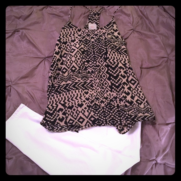 Never worn black and tan razorback tank with aztec print.