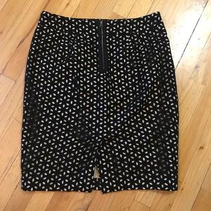 Gently worn Size 10 Black and Tan Eyelet LOFT Skirt. Measures approximately 16 inches across the waist and 22 inches in length laying flat. 100% cotton. Zipper in back. No rips, stains or tears. Non-smoking home.