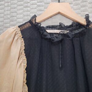 Black and Tan Sheer Blouse Ruffled Collar and Flutter Sleeves-Rachel Roy-Sz M