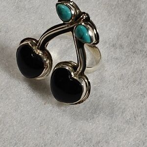 NEW elegant black onyx and turquoise cherry ring, perfect for adding a playful touch to any outfit. .925 sterling silver. Size 10