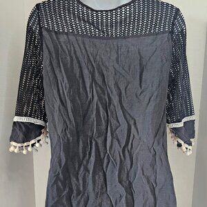 Style: It's designed as a loose-fitting tunic, perfect for wearing over swimwear at the beach or by the pool.
