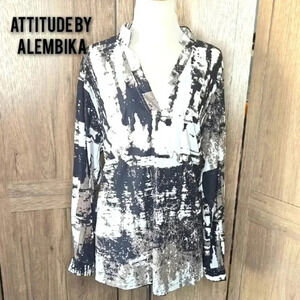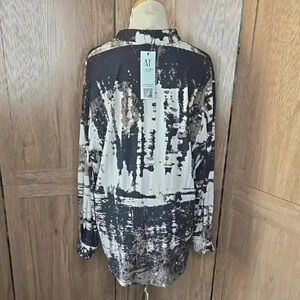 Stylish abstract print. Long sleeves. V-neck design. Perfect for casual or office wear.