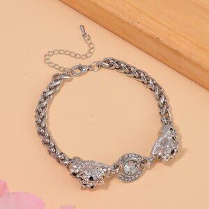 Black and White Austrian Crystal and Enameled Tiger Bracelet in Silvertone