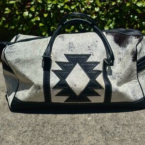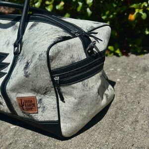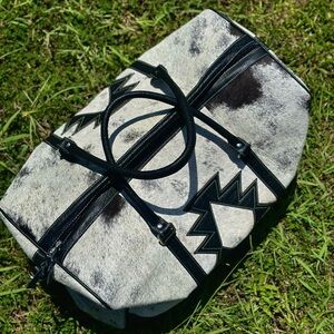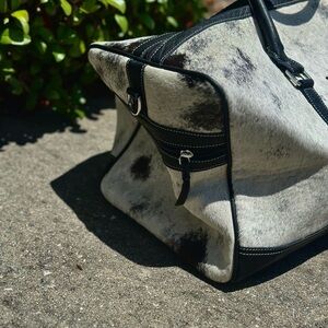 Stylish and durable, this black and white cowhide and genuine leather travel bag is perfect for any journey. Featuring a unique design, it combines functionality with fashion.
