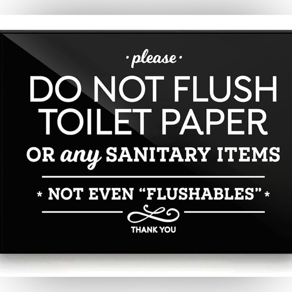 Stylish black and white bathroom sign with clear instructions. Perfect for home or business use.
