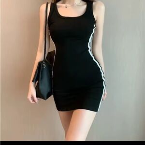 Sleek and stylish, this black and white bodycon dress is perfect for any occasion. The contrasting colors create a flattering silhouette. It says Large but I think you should size up