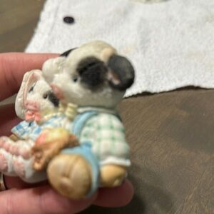 This charming black and white bunny decor accent adds a touch of whimsy to any space. Featuring two intricately detailed rabbits, this piece is perfect for those who appreciate delicate and collectible decor. The monochrome palette ensures it complements a variety of interior styles, making it a versatile addition to your home.